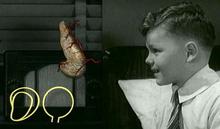 Young Edgar, (played by Al Yankovic wearing a rubber appliance) looks on in rapt fascination as the mysteries of the pancreas are revealed in Weird Al Yankovic's musIc video, PANCREAS.